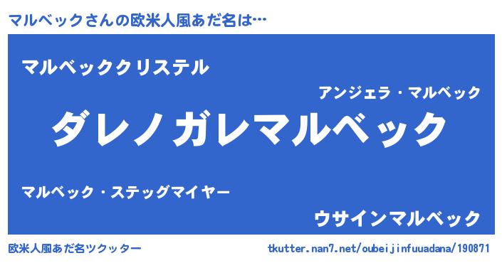 | 男性向けラノベタイトル風あだ名 | 『この素晴らしい世界にマルベックを!』 |