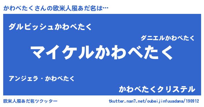 | 女子向けラノベタイトル風あだ名 | 『かわべたく姫と円卓の騎士』 |
