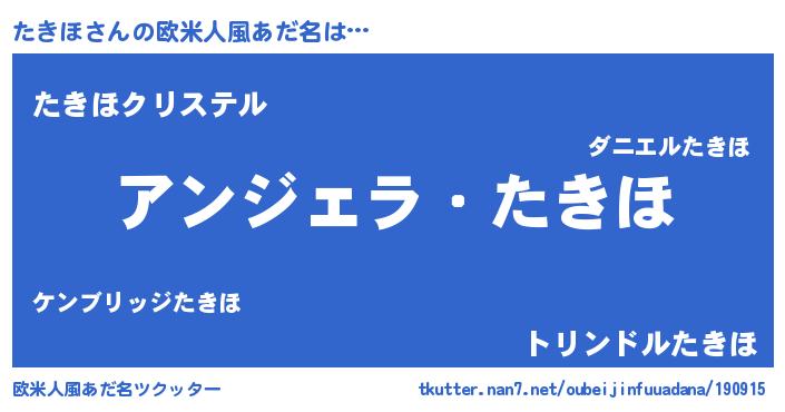 | 男性向けラノベタイトル風あだ名 | 『たきほに滅ぼされるだけの簡単なお仕事です』 |