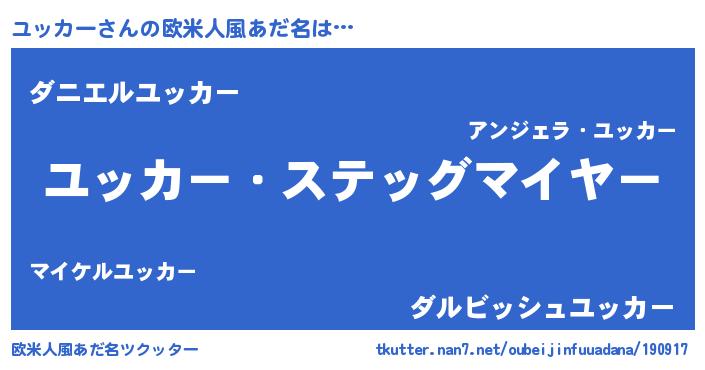 | 男性向けラノベタイトル風あだ名 | 『緋弾のユッカー』『ユッカーの憂鬱』 |
