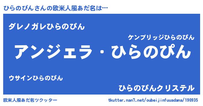 | 男性向けラノベタイトル風あだ名 | 『ひらのぴんに滅ぼされるだけの簡単なお仕事です』 |