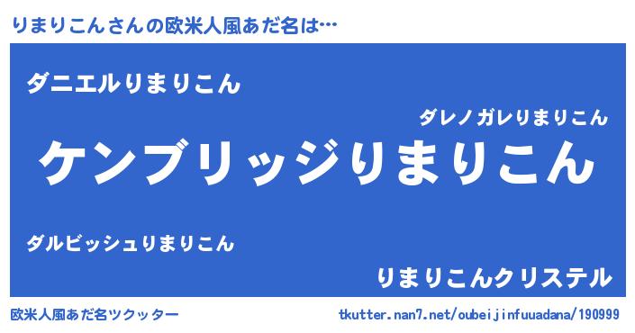 | 男性向けラノベタイトル風あだ名 | 『Re:りまりこんから始める異世界生活』 |