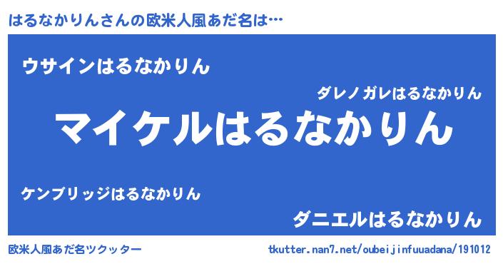 | 胡散臭い通販商品みたいなあだ名 | 『必ず成功する霊験あらたかなお札…その名も「はるなかりん」』 |