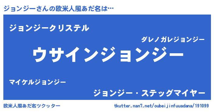 | 男性向けラノベタイトル風あだ名 | 『ジョンジーの嫁は女の子じゃないと思った?』 |