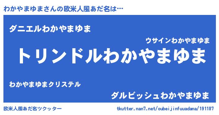 | 男性向けラノベタイトル風あだ名 | 『ワカヤマユマスレイヤー』 |