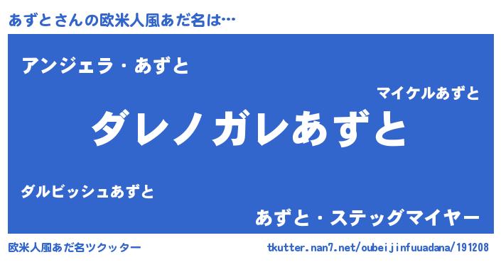 | 意味不明あだ名 | 『住所不定無職あずと(39歳)』 |