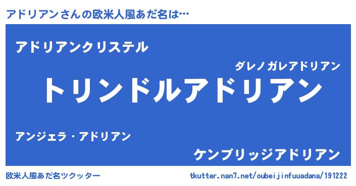 | 男性向けラノベタイトル風あだ名 | 『転生したらアドリアンだった件』 |