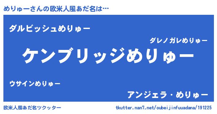 | 男性向けラノベタイトル風あだ名 | 『魔法科高校のめりゅー』 |