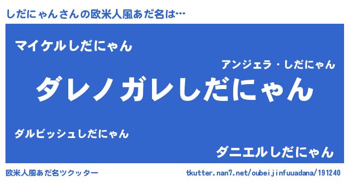 | 意味不明あだ名 | 『住所不定無職しだにゃん(3歳)』 |