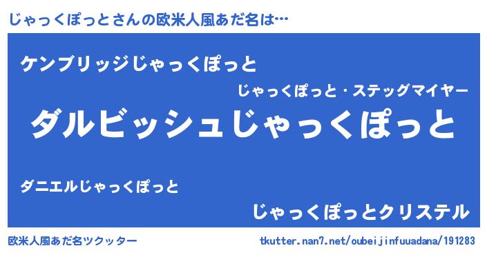 | 男性向けラノベタイトル風あだ名 | 『じゃっくぽっとという概念が存在しない退屈な世界 』 |