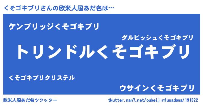 | 男性向けラノベタイトル風あだ名 | 『転生したらくそゴキブリだった件』 |