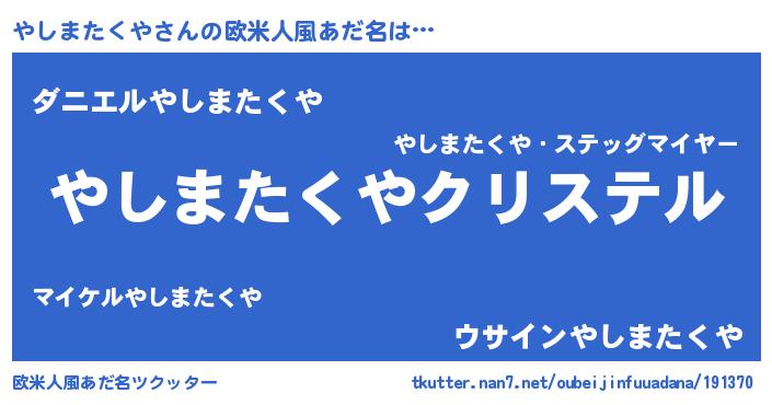 | 意味不明あだ名 | 『やしまたくやフォーエバー』 |