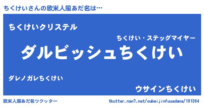 | ヘコむあだ名 | 『ちくけい(苦笑)』『なまこ酢』 |