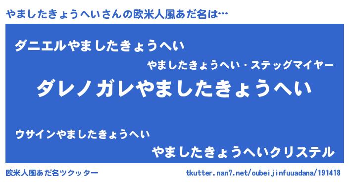 | 男性向けラノベタイトル風あだ名 | 『この素晴らしい世界にやましたきょうへいを!』 |