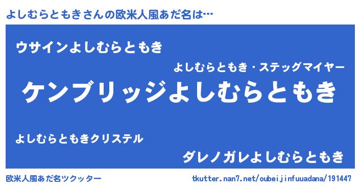| 意味不明あだ名 | 『自称よしむらともき』 |