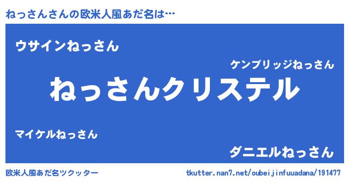 | 女子向けラノベタイトル風あだ名 | 『ねっさん伯爵の花嫁』『ねっさん恋絵巻』 |