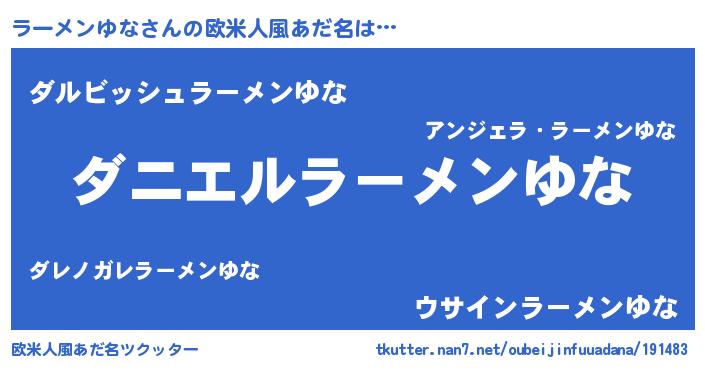 | 男性向けラノベタイトル風あだ名 | 『ノーゲーム・ノーラーメンユナ』 |