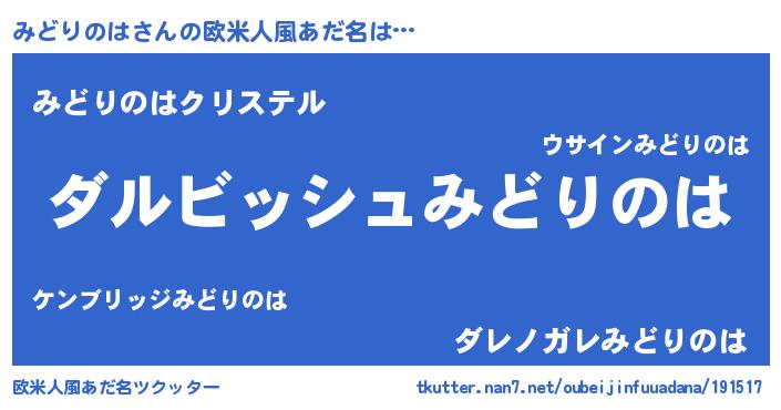 | 男性向けラノベタイトル風あだ名 | 『みどりのはという概念が存在しない退屈な世界 』 |