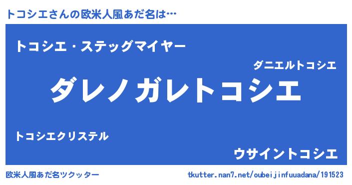 | ピコ太郎風あだ名 | 『トコ十郎』『トト太郎』『ピト五郎』 |