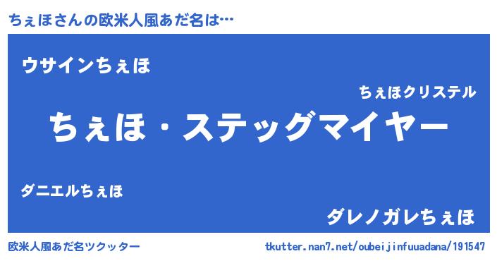 | 意味不明あだ名 | 『とにかく怪しいちぇほ』『自称ちぇほ』 |