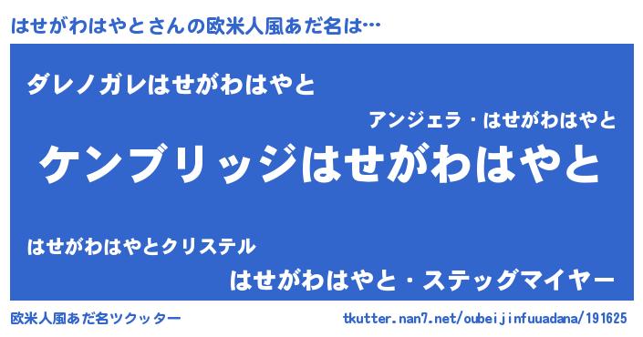 | 意味不明あだ名 | 『自称はせがわはやと』 |