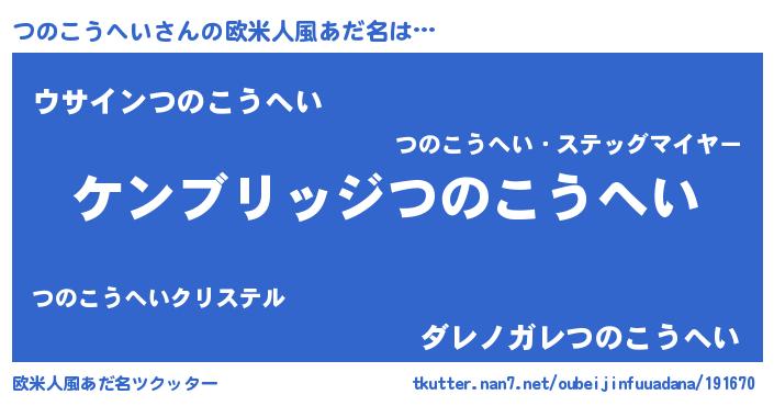 | 女子向けラノベタイトル風あだ名 | 『つのこうへいなんてお断りですっ。』 |
