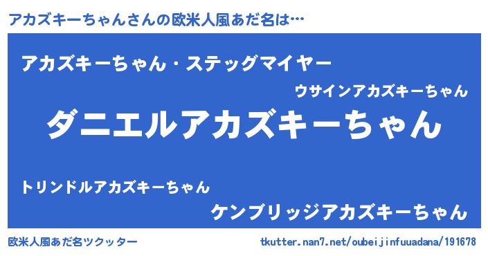 | 男性向けラノベタイトル風あだ名 | 『おまえをオタクにしてやるから、俺をアカズキーちゃんにしてくれ! 』 |
