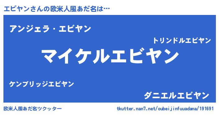 | ヒーロー風カッコイイあだ名 | 『スーパーエビヤン』『愛の使者エビヤン』 |