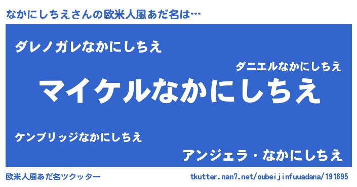 | 男性向けラノベタイトル風あだ名 | 『ナカニシチエアートオンライン』 |