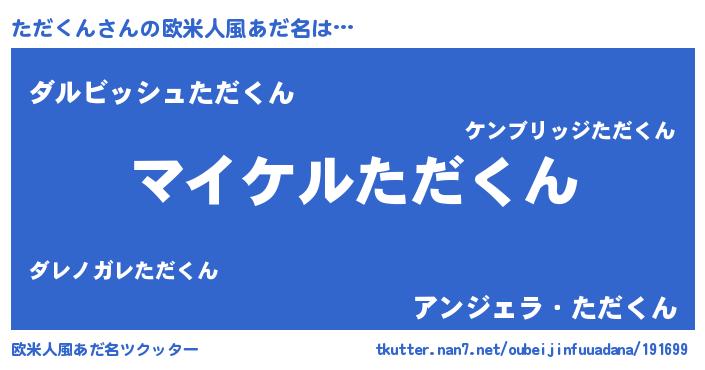| 男性向けラノベタイトル風あだ名 | 『ただくんの憂鬱』『魔弾の王とただくん』 |