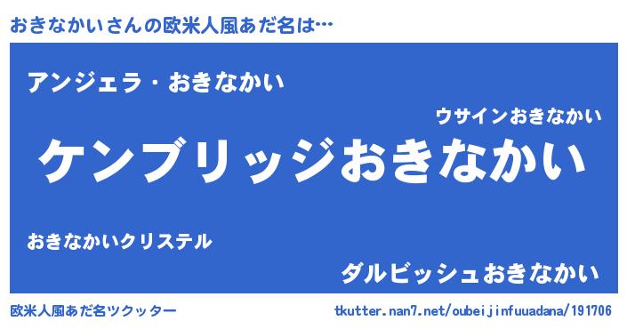 | 意味不明あだ名 | 『自称おきなかい』『永久保存おきなかい』 |