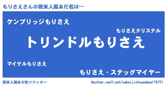| 男性向けラノベタイトル風あだ名 | 『もりさえ~年齢イコール彼女いない歴の魔法使い~』 |