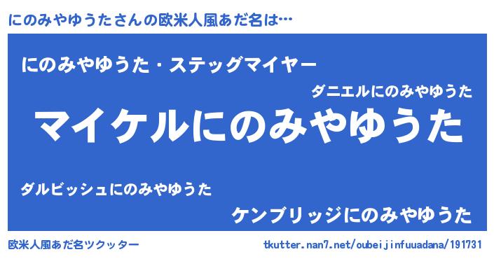| 男性向けラノベタイトル風あだ名 | 『にのみやゆうたの憂鬱』 |