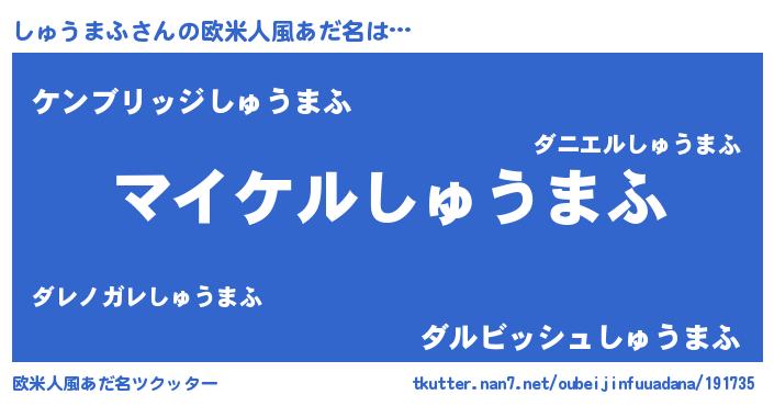 | ヘコむあだ名 | 『しゅにゅー』『しゅうまふ(小並感)』 |