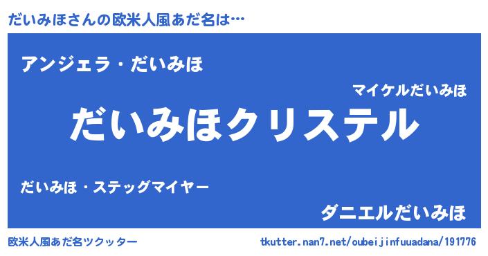 | 女子向けラノベタイトル風あだ名 | 『だいみほ伯爵の花嫁』『だいみほ恋絵巻』 |