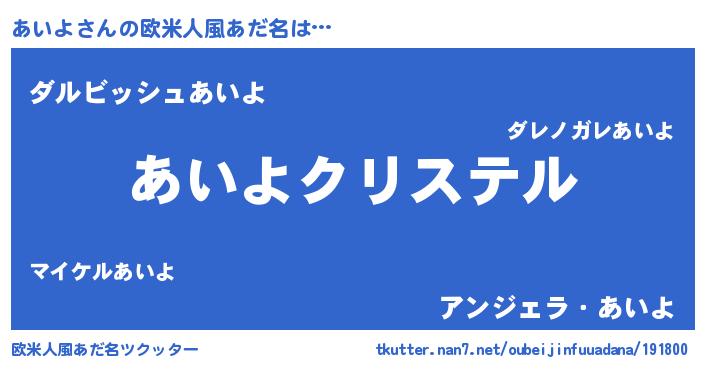 | 意味不明あだ名 | 『あいよフォーエバー』『永久保存あいよ』 |