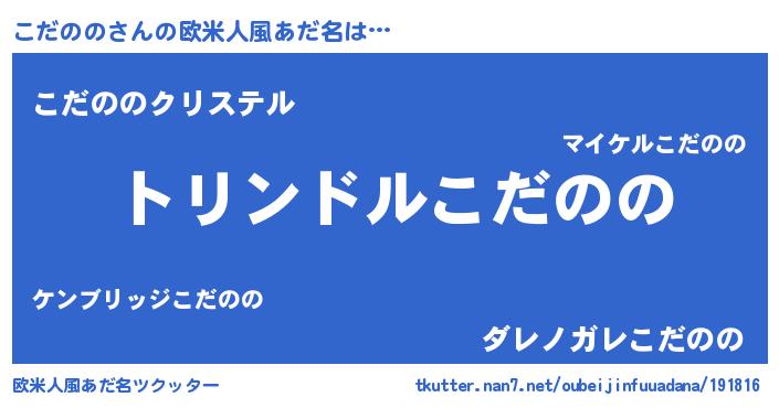 | 胡散臭い通販商品みたいなあだ名 | 『運命の人と巡り会える高級そうな絵画…その名も「こだのの」』 |