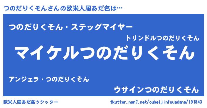| 男性向けラノベタイトル風あだ名 | 『つのだりくそんの憂鬱』 |