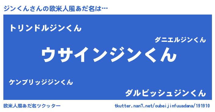 | 男性向けラノベタイトル風あだ名 | 『ジンくんの嫁は女の子じゃないと思った?』 |