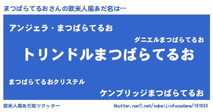 | 男性向けラノベタイトル風あだ名 | 『まつばらてるお~年齢イコール彼女いない歴の魔法使い~』 |