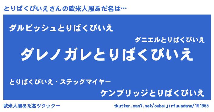 | 意味不明あだ名 | 『住所不定無職とりばくびいえ(56歳)』 |