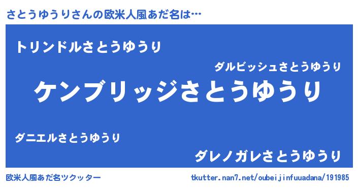 | 男性向けラノベタイトル風あだ名 | 『Re:さとうゆうりから始める異世界生活』 |