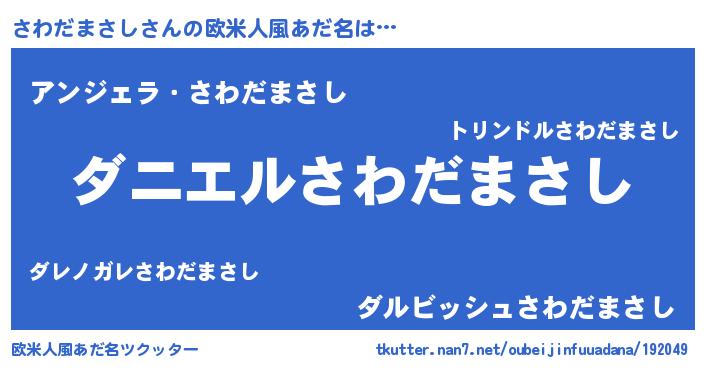 | 男性向けラノベタイトル風あだ名 | 『ノーゲーム・ノーサワダマサシ』 |