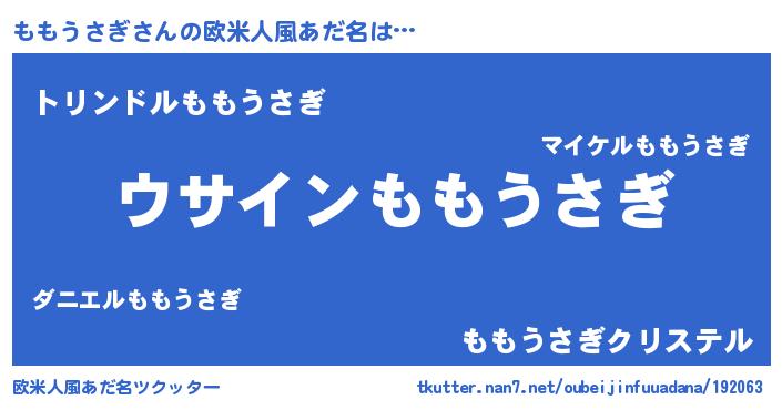 | 男性向けラノベタイトル風あだ名 | 『ももうさぎの嫁は女の子じゃないと思った?』 |