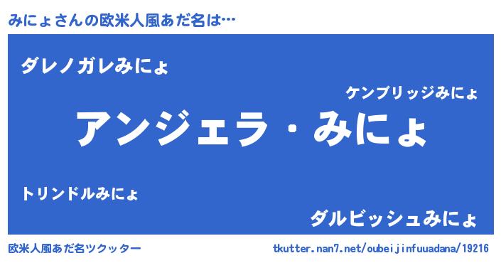 | 意味不明あだ名 | 『住所不定無職みにょ(6歳)』『自称みにょ』 |