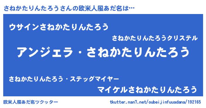 | 男性向けラノベタイトル風あだ名 | 『さねかたりんたろうに滅ぼされるだけの簡単なお仕事です』 |