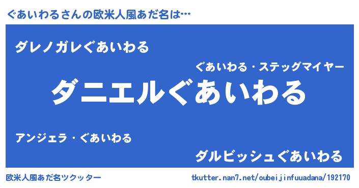 | ヘコむあだ名 | 『ぐあいわる(笑)』『ぐあ太郎』 |