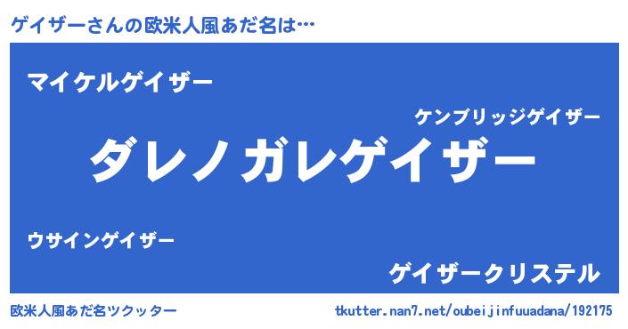 | 意味不明あだ名 | 『住所不定無職ゲイザー(84歳)』 |