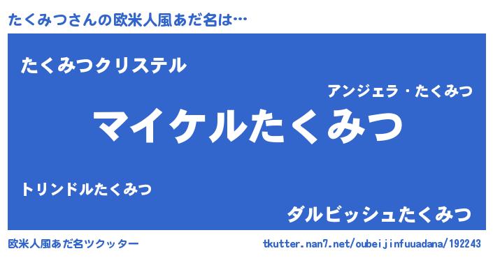 | 意味不明あだ名 | 『ペロリンたくみつ』『永久保存たくみつ』 |