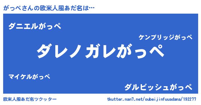 | 意味不明あだ名 | 『住所不定無職がっぺ(43歳)』『自称がっぺ』 |